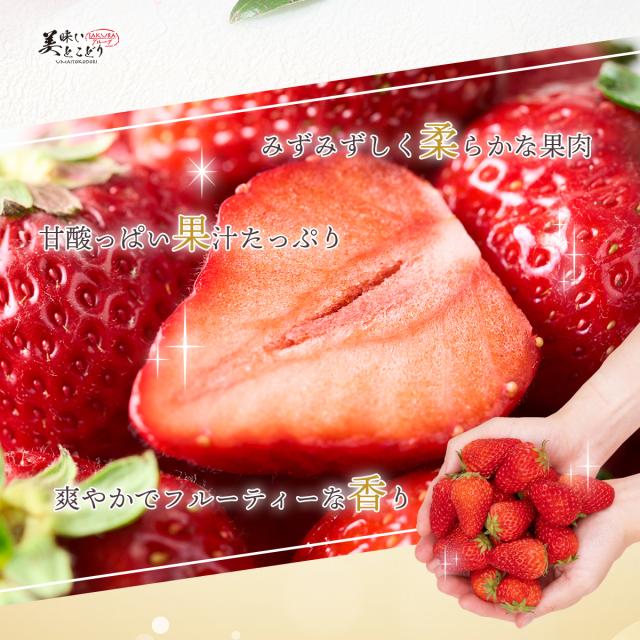和歌山の温暖な気候で太陽をたっぷり浴びて育ったいちごは、香りが豊かで甘味が強く、とってもジューシーです。その時期に一番旬の品種を野菜ソムリエが厳選し、お届けいたします。