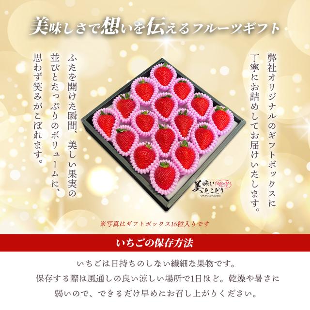 [送料無料] 美味いとこどり 和歌山県産 幸せいちご 16粒 紀の幸 ギフトボックス 高級 いちご 等級S ※野菜ソムリエ監修