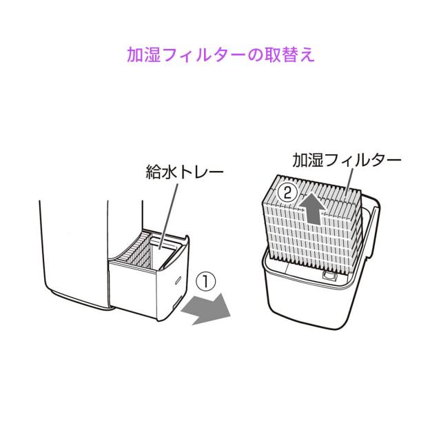 | ※本品は消耗品です。加湿フィルター次のような状態になった場合は、早めの交換をおすすめします。 ・お手入れしても、水あかやニオイが取れない。 ・変色(黒色・黄色)や汚れがひどい。 ・白い固まりが付き、加湿フィルターが水を吸い上げなくなったとき。 ・傷みや汚れ、型くずれがひどいとき。 |