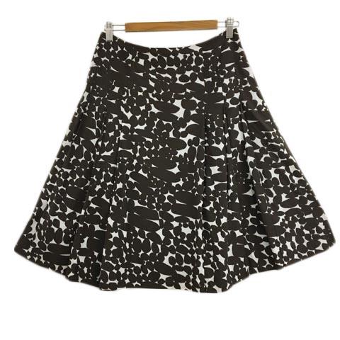 【中古】エンスウィート レナウン スカート フレア 膝丈 総柄 タック 2 茶 白 ブラウン ホワイト レディース