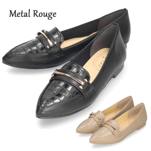 ローファー レディース 大人 ビットローファー カジュアル きれいめ ローヒール クロコダイル柄 ブラック 黒 オーク 靴 日本製 メタルルージュ 1001