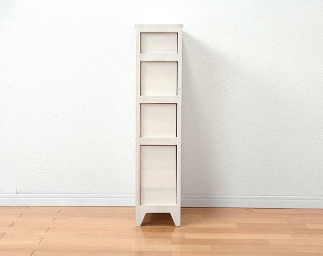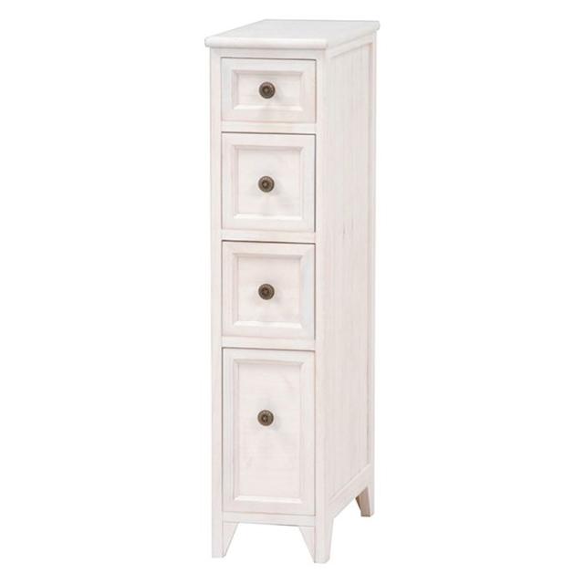 チェスト 完成品 白 通販 MCH-5480AW シャビーウッドファニチャー スリムチェスト ランドリーチェスト 4段 幅20cm 洗面所 隙間収納 おしゃれ シンプル 木製 桐製 アンティークホワイト 幅20×奥行40×高さ85cm 収納家具 インテリア