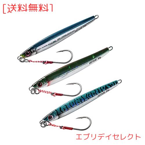 Goture(ゴチュール) ロングジグセット 80g ルアーセット オフショアジギング タチウオ 真鯛 ヒラマサ サクラマス ブリ マグロ カンパチ 3