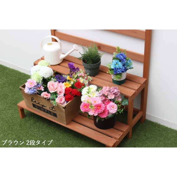 花やグリーンとの相性抜群の天然木を使用していますので、お好きな鉢植え等を置けば殺風景なお庭も一気に華やかになります。