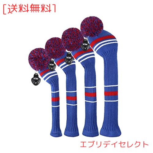 ゴルフヘッドカバー ニット 4枚セット、ゴルフクラブドライバーウッド(460 cc)*1フェアウェイウッド* 2とハイブリッド*1 (青い警告)