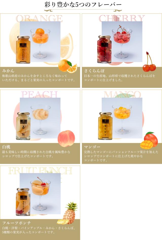 《フルーツポンチ》白桃・洋梨・パインアップル・みかん・さくらんぼ、5種類の果実が入ったコンポートです。