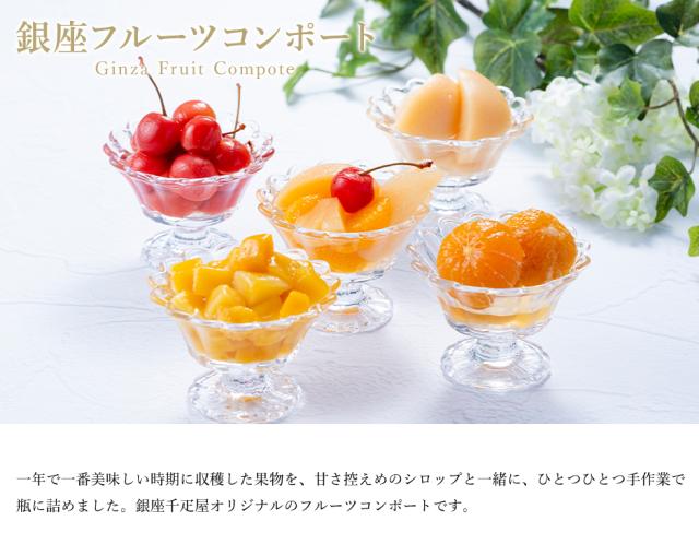 一年で一番美味しい時期に収穫した果物を、甘さ控えめのシロップと一緒に、ひとつひとつ手作業で瓶に詰めました、銀座千疋屋オリジナルのフルーツコンポートです。