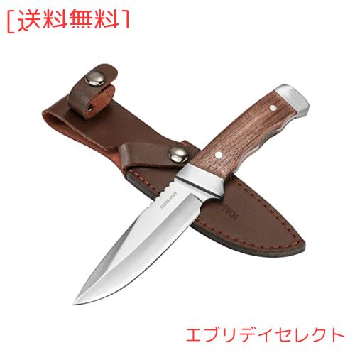 ◆商品名:SWISS+TECH ナイフ シースナイフ アウトドアナイフ キャンプナイフ フルタング構造 天然ウッドハンドル 刃渡り約10cm ケース付き