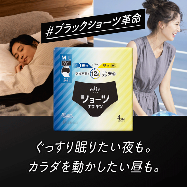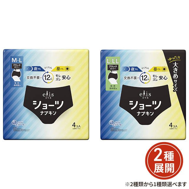 [2種類から1種類選択] エリス ショーツナプキン 昼・夜長時間用 ブラック 4枚入 医薬部外品 大王製紙