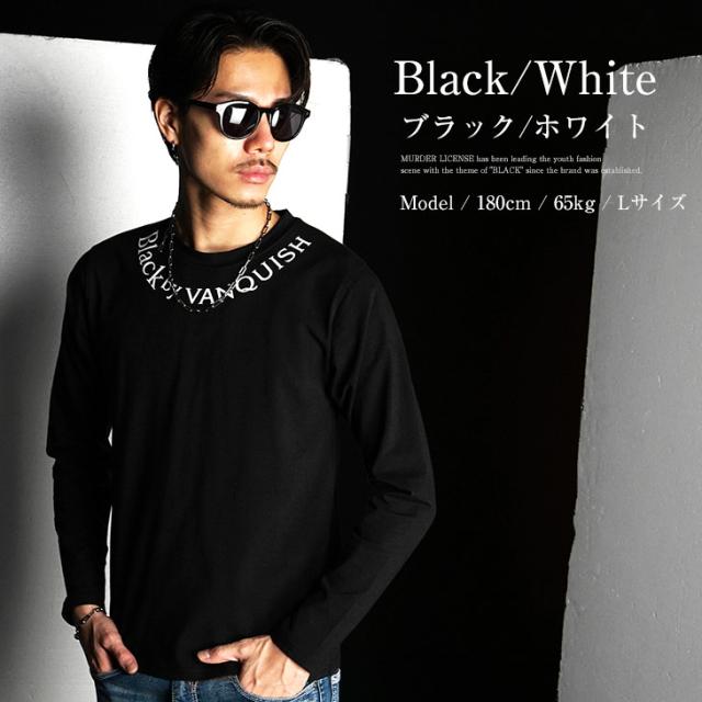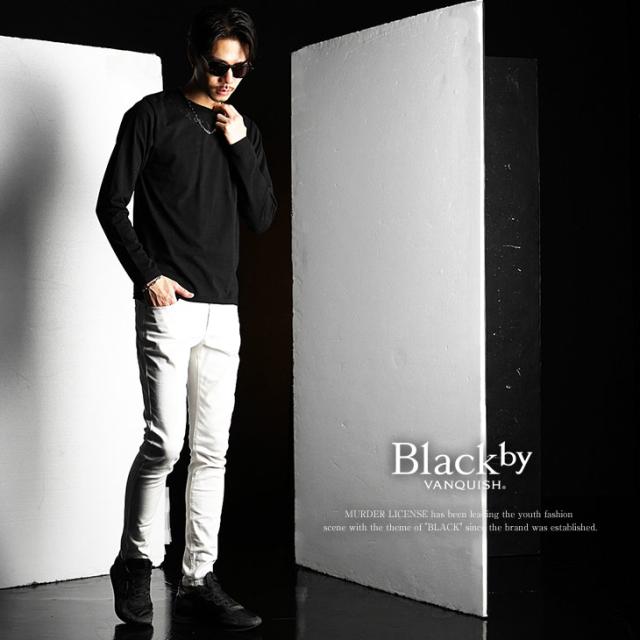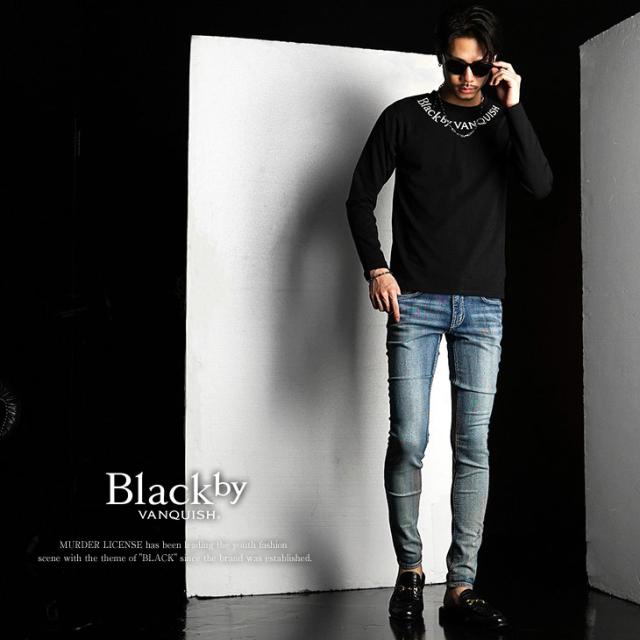 クルーネック Tシャツ メンズ ブランド Tシャツ メンズ 長袖 黒Tシャツ メンズ カットソー 半袖 ネックロゴ Tシャツ スリム タイト 細身 夏 夏服 夏物 春夏 メンズファッション ちょいワル お兄系 オラオラ系 Black by VANQUISH ブラックバイヴァンキッシュ 夏新作 新作