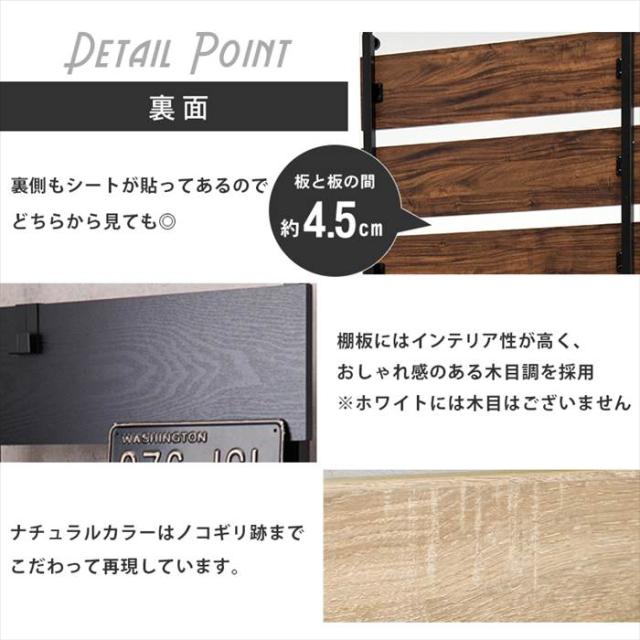 | 素材 | フレーム:スチール 【棚板】ブラウン/ブラック:プリント紙化粧繊維板、ナチュラル/ホワイト:プリント紙化粧繊維板、 ブラック/ブラック:プリント紙化粧繊維板、ホワイト/ホワイト:メラミン樹脂化粧繊維板 |