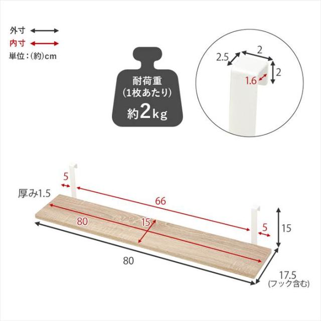 突っ張り ウォールシェルフ 棚板 通販 KTR-3142-T80 対応商品:KTR-3146/KTR-3147/KTR-3148 追加棚板 幅80cm 突っ張りウォールラック 突っ張り棚 つっぱり ラック 幅80×奥行17.5 収納家具 家具 インテリア