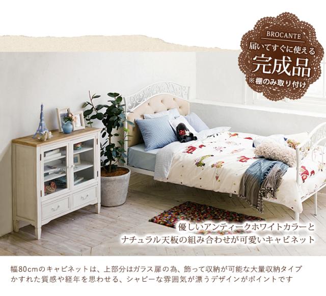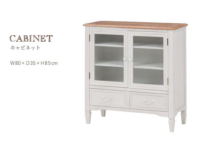 キャビネット 白 通販 MCC-7324WH ブロカントシリーズ 収納棚 扉付き 引き出し 2杯 木製 桐製 おしゃれ シンプル ナチュラル アンティーク調 ホワイト 脚付き 幅80×奥行35×高さ85cm 収納家具 家具 インテリア