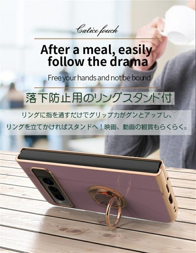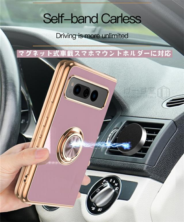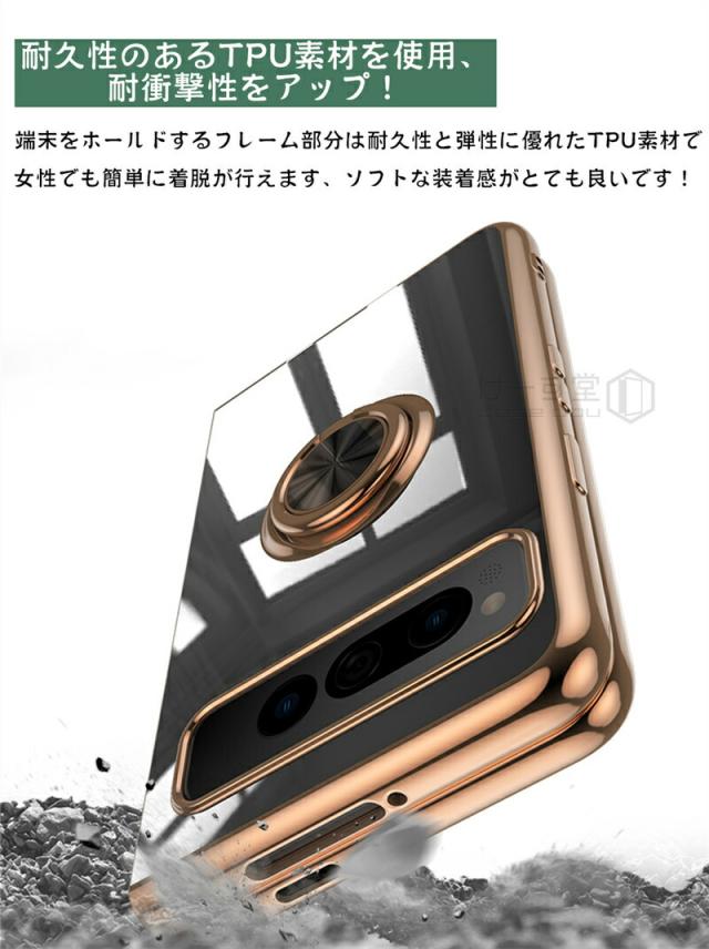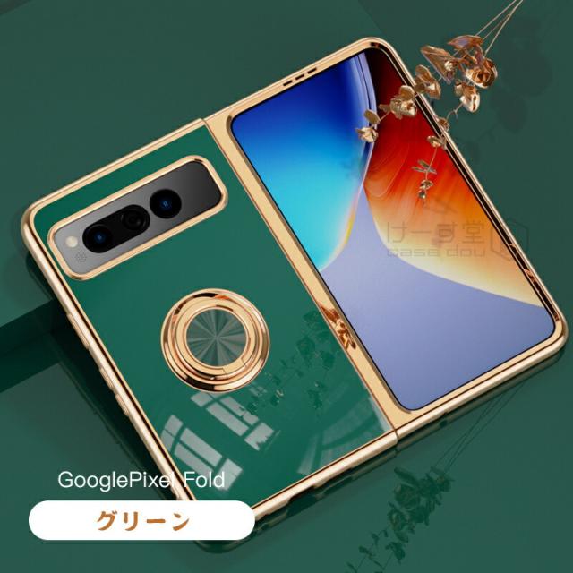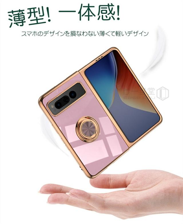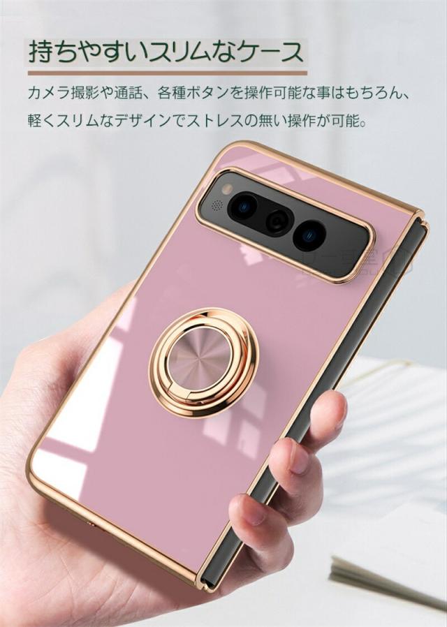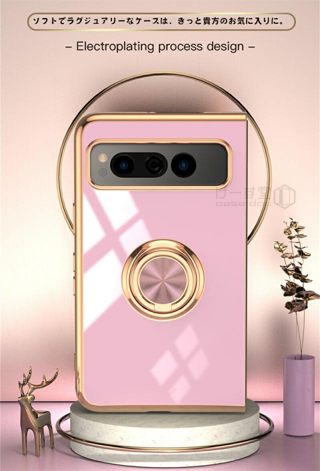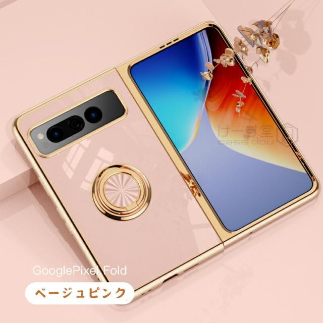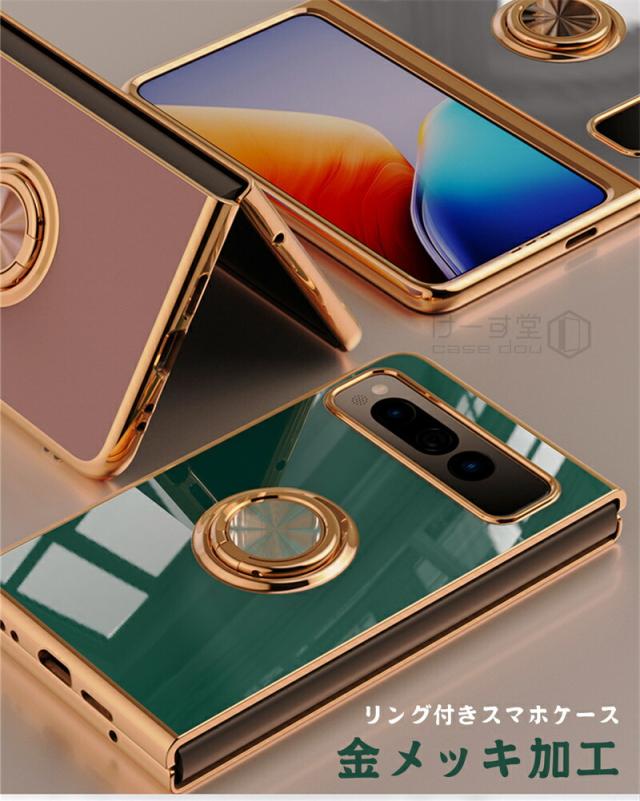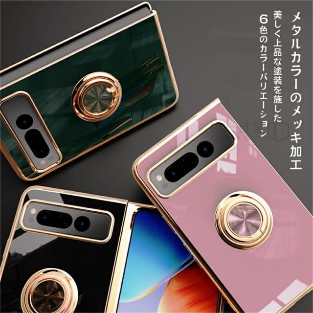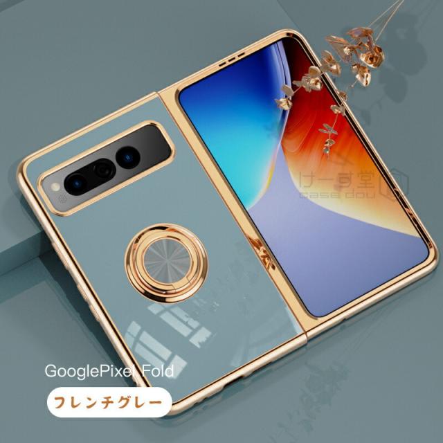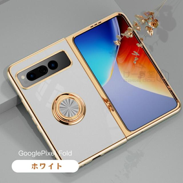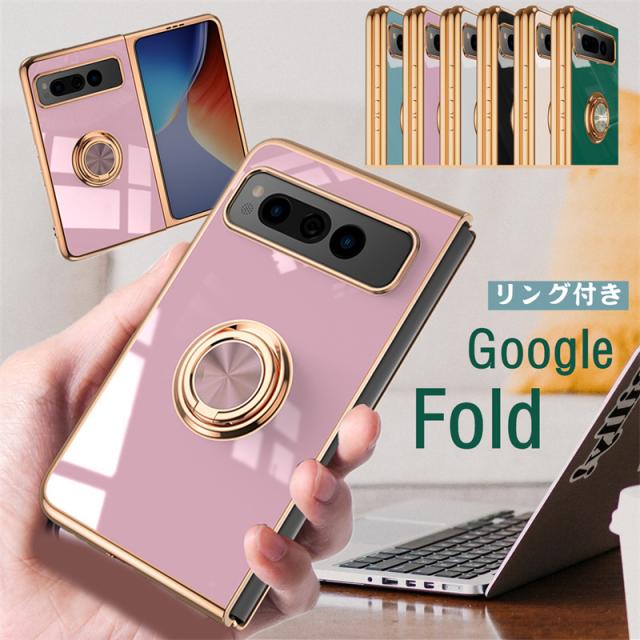 リングスタンド付き! Google Pixel Fold ケース リング 付き 軽量 薄型 メッキ 加工 docomo ドコモ au カバー 耐衝撃 グーグル ピクセル フォールド Google 折りたたみスマートフォン スマホケース おしゃれ かわいい TPU 大人 男子 女子 カメラ レンズ カバーレンズ保護