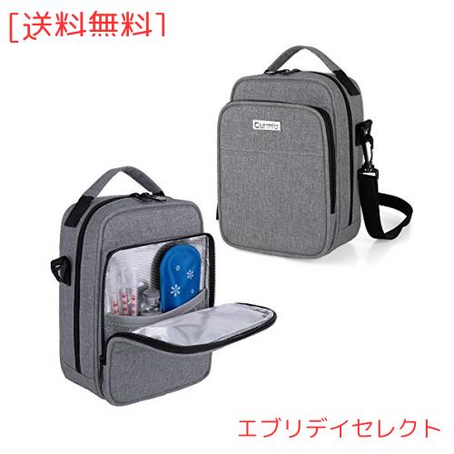 CURMIO インスリンポーチ ショルダーストラップ付き 大容量 血糖値測定用品 インスリン注射用品 まとめて収納 グレー