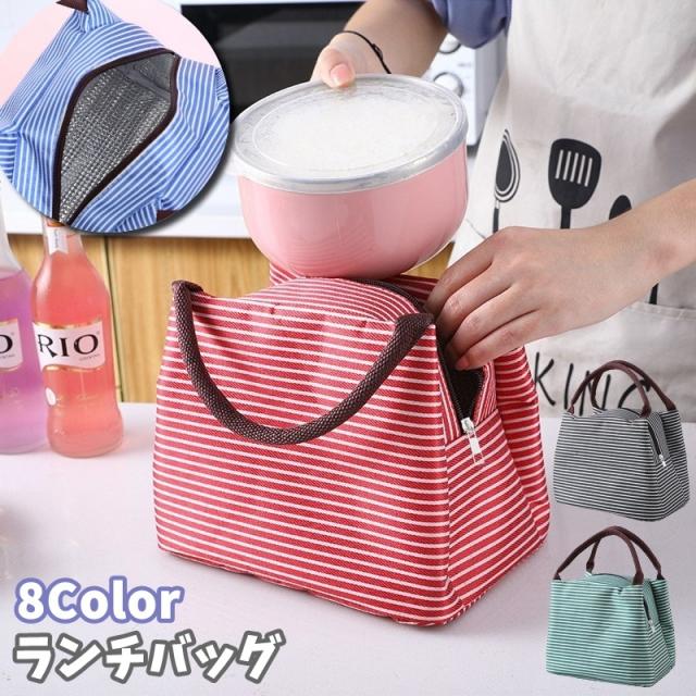 ランチバッグ ランチトート 保冷バッグ 保温バッグ マチ広め 開け口広め ファスナー 手提げ 持ち手付き お弁当箱入れ ボーダ