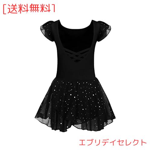 Arshiner バレエ レオタード 子供 黒 バッククロス 肩フリル キラキララメ 100cm 綿生地 可愛い バレエ ダンス 新体操 教室 練習着 レッ
