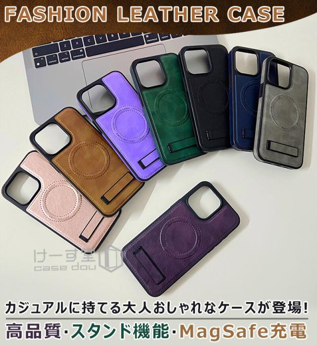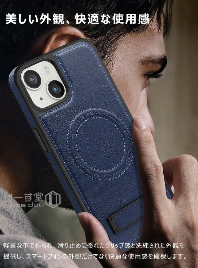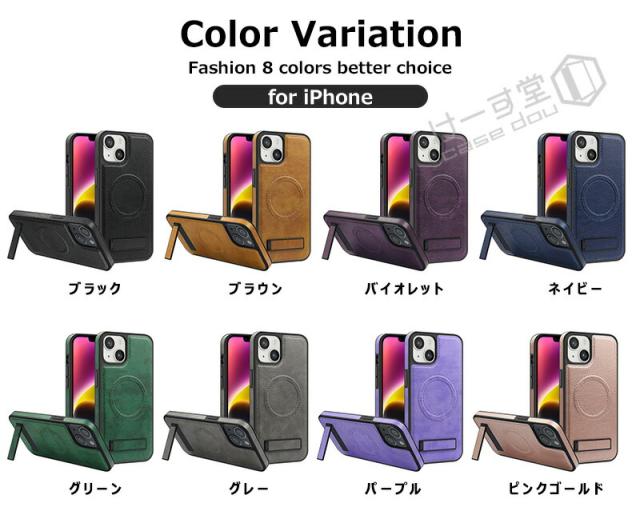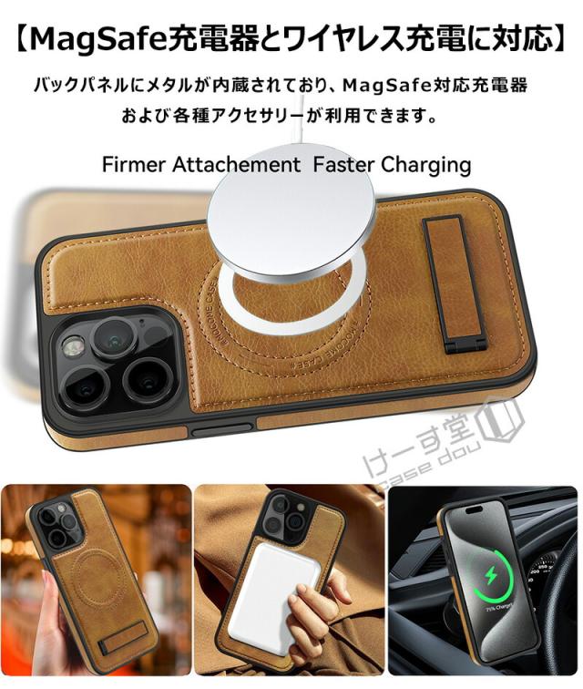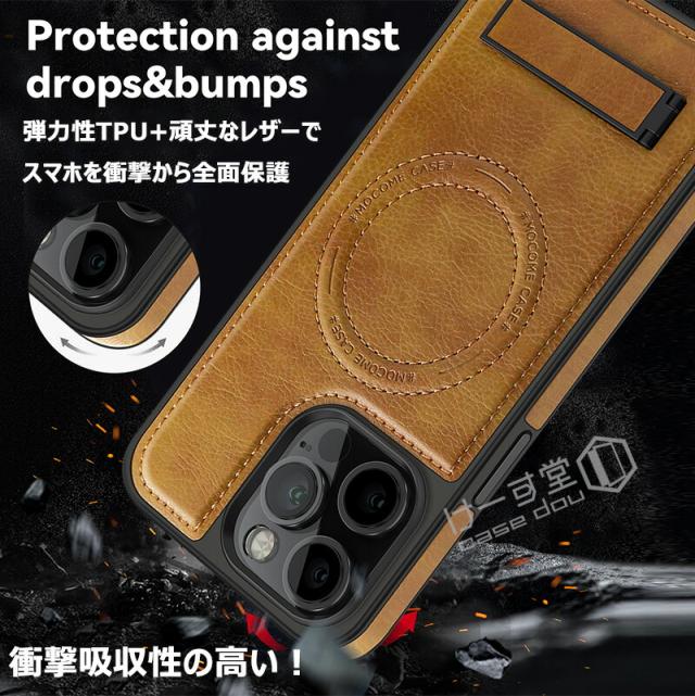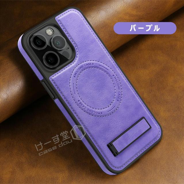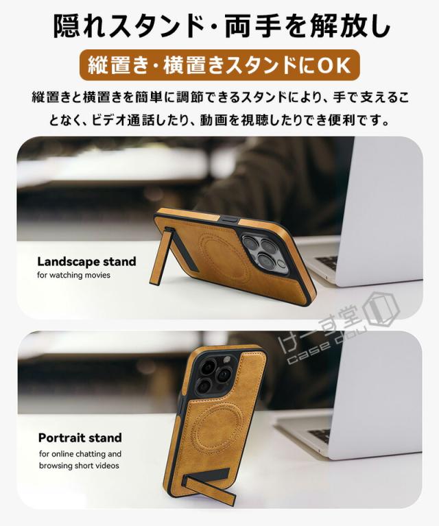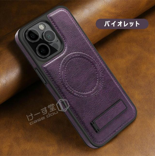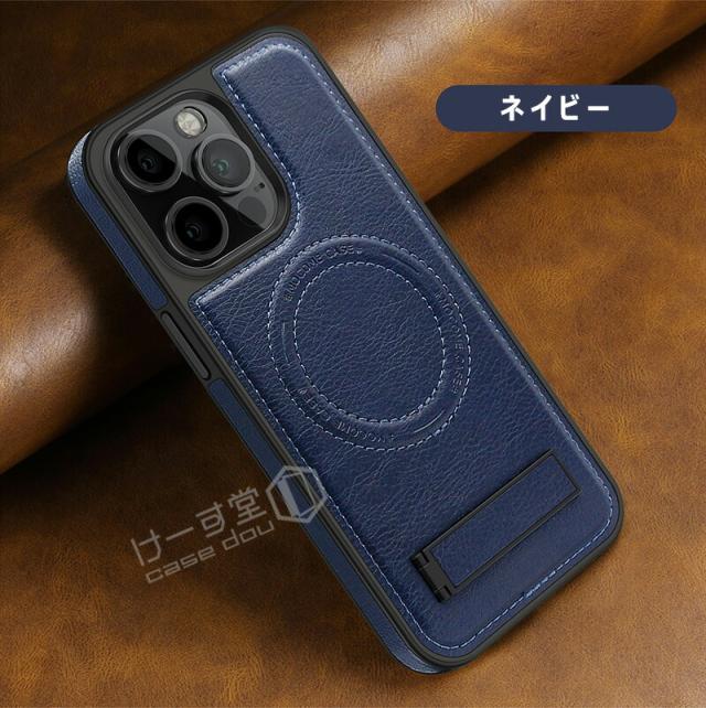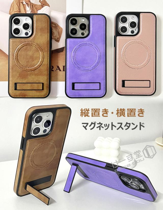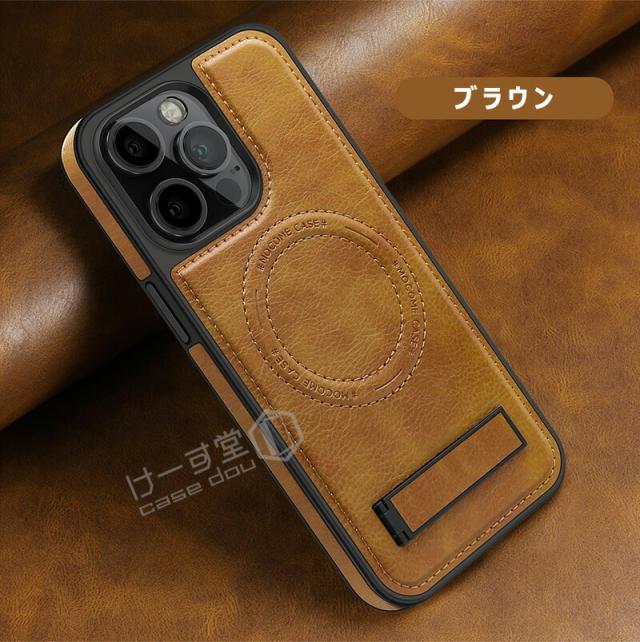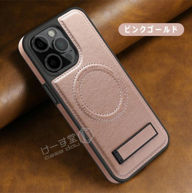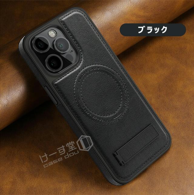 iPhone17 air 16e 15 14 メタルキックスタンドケース マグネットスタンド付き 耐衝撃 隠しスタンド 傷防止 スマホケース iPhone 14 pro 13 promax スマホカバー 縦置き 横置き 背面 革 アイフォン16 12 15 11 pro max カバー 軽量 薄型 大人 レザー Magsafe対応ケース