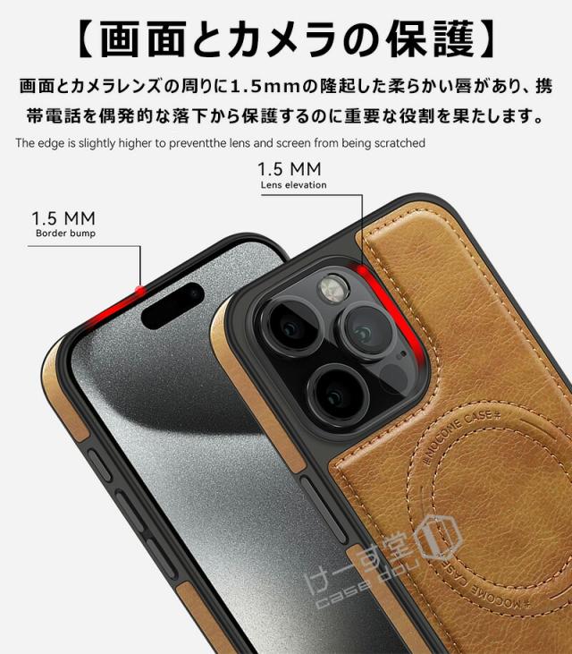■特徴:落下防止、ワイヤレス充電対応、着脱しやすい、カード収納、耐衝撃、画面とカメラの保護