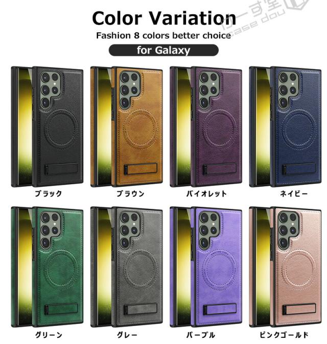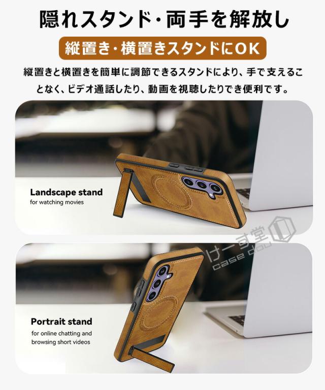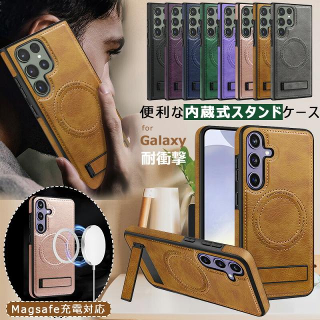 Galaxy S25 Ultra S24 S23 Galaxy S22 Ultra マホカバー メタルキックスタンド マグネットスタンド付き 耐衝撃 隠しスタンド 傷防止 縦置き 横置き 背面 ギャラクシーS25 s24 s23 s22 ウルトラケース 革 カバー ス軽量 薄型 大人 レザー Magsafe対応ケース