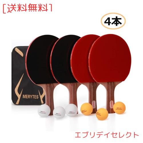 Merytes 卓球 ラケット ピンポンラケット パドル 4本セット 卓球ボール6個付き 卓球 セット