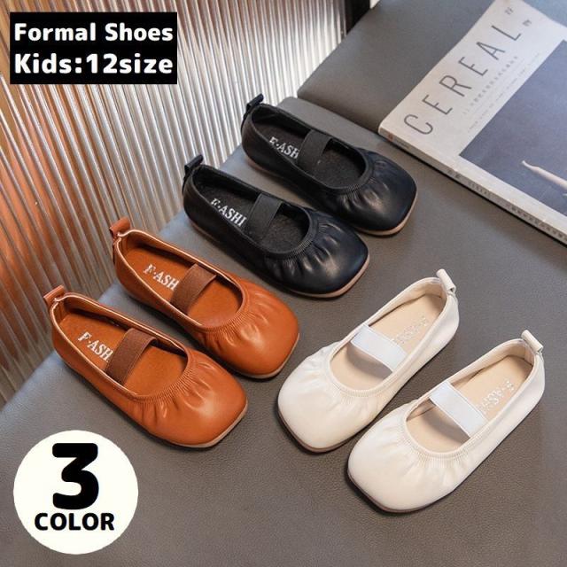 フォーマルシューズ バレエシューズ パンプス 子供靴 キッズ 女の子 レザー調 フラット ベルト ワンストラップ 発表会 結婚式