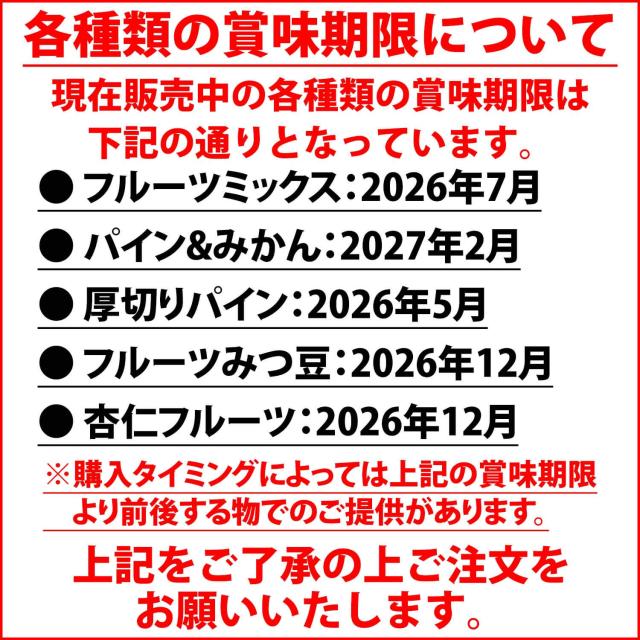 実際に出荷する商品の賞味期限は個別に異なっております。賞味期限につきまして商品ページ内に表示してある現在庫での賞味期限リストを参照してください。