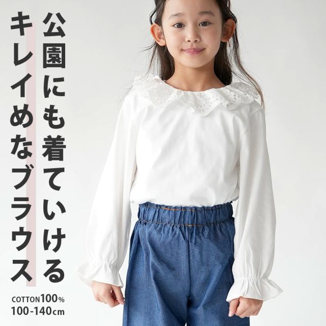 在庫処分【SALE】 ブラウス 子供服 トレンド 襟レース 丸襟 ビッグ衿 入学式 卒業式 発表会 お嬢様コーデ 綿100% コ
