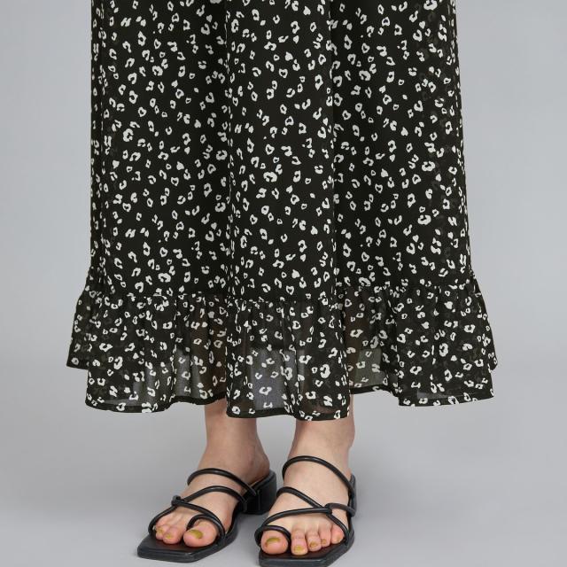 レオパードプリントフリルギャザースカート