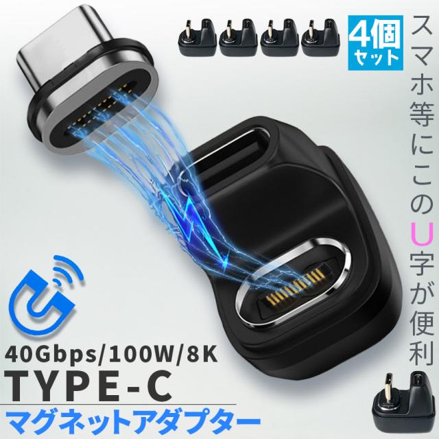USB4.0 Type C アダプター マグネット U字 4個セット オス メス 180° PD 100W/5A 急速充電 40Gbps高速データ転送 8K@60Hz映像出力 タイプc type-c 90度 オス メス USB C コネクター 軽量 磁石 磁気