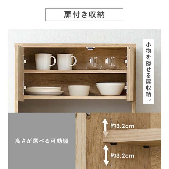 ●扉付き収納:小物を隠せる扉収納。高さが選べる可動棚付き。