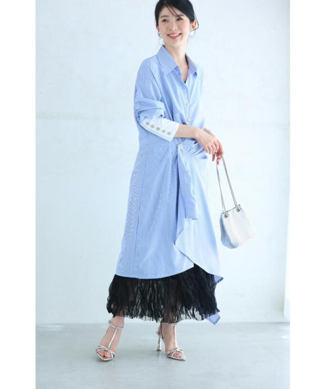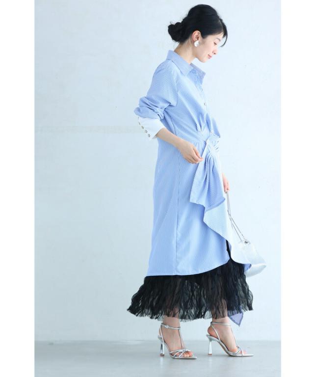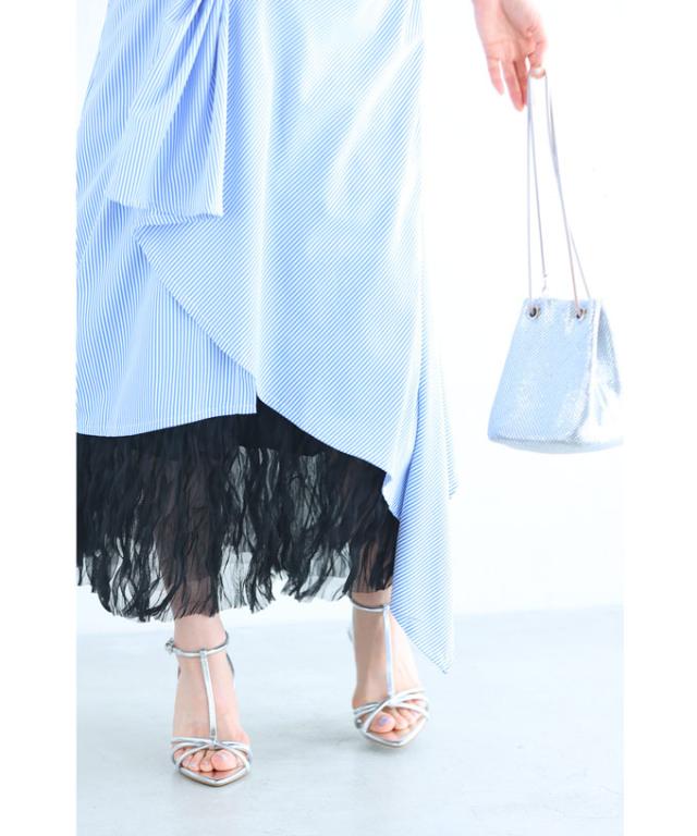 再入荷5月23日 (黒)波うつゆらゆらチュールミディアムスカート スカート ミディアム レディース ファッション 春服 夏服 着回し チュール cawaii w50349nc S~2L対応 ブラック 日常使い キレイめ シンプル ミセス 30代 40代 50代