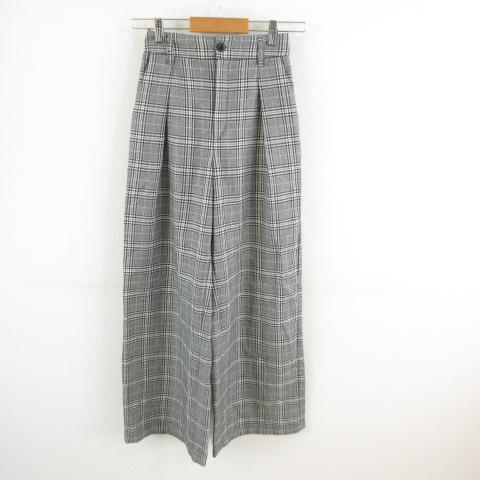 【中古】ジーユー GU ワイドパンツ ロング チェック グレー S *T846 レディース