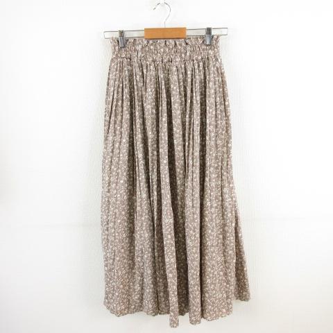 【中古】グレイル GRL プリーツロングスカート 小花柄 茶 白 M *A667 レディース