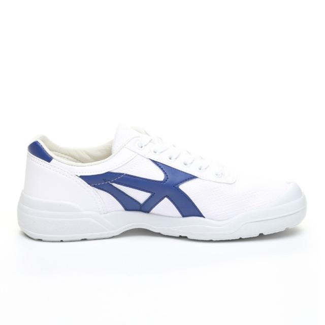 ソールは非塩ビ素材であり、環境に優しく、衝撃吸収性に優れた「ベステック」を使用。紐タイプ。