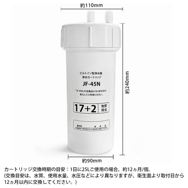 JF-45N 浄水カートリッジ タッチレス水栓(浄水器ビルトイン型) 交換用浄水カートリッジ キッチン用 水栓取替用カートリッジ 17+2物質除去タイプ [互換品]