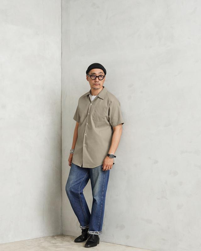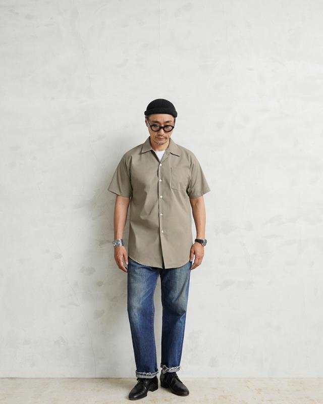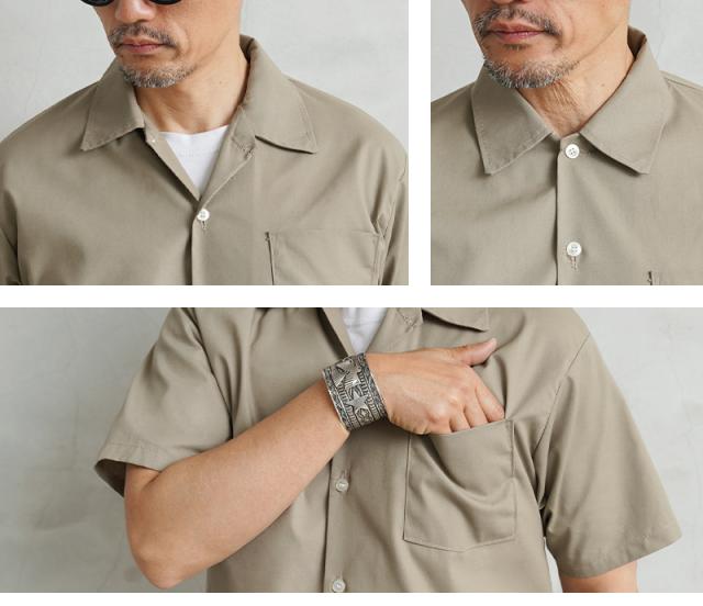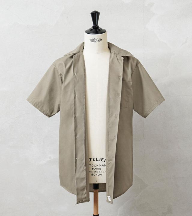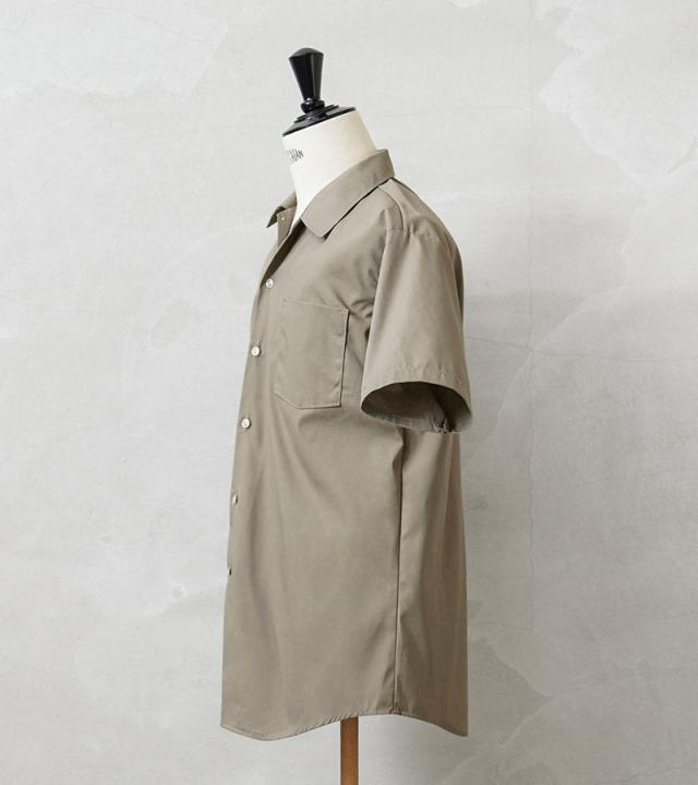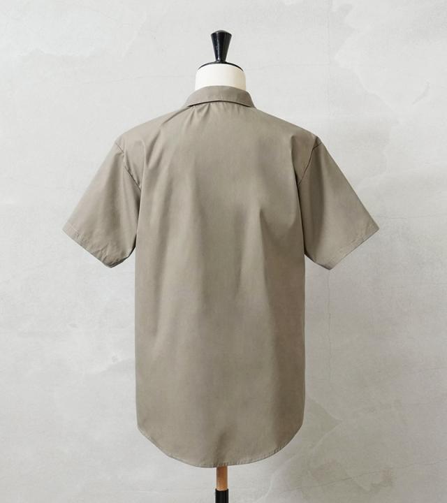 UNICOR(ユニコール)社製の、アメリカ連邦刑務所(FEDERAL BUREAU OF PRISON)で着用される半袖のプリズナーシャツです。台衿のないレギュラーカラーや前立てのつかない簡素なつくりですが、シンプルな開襟シャツとカーキカラーが非常に使い勝手のよい一着です。ホワイトのボタンもアクセントになっており、片胸に配置されたポケットや、ヨークやウエストのシェイプもないシンプルなデザイン。