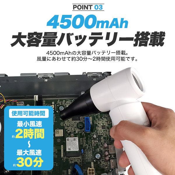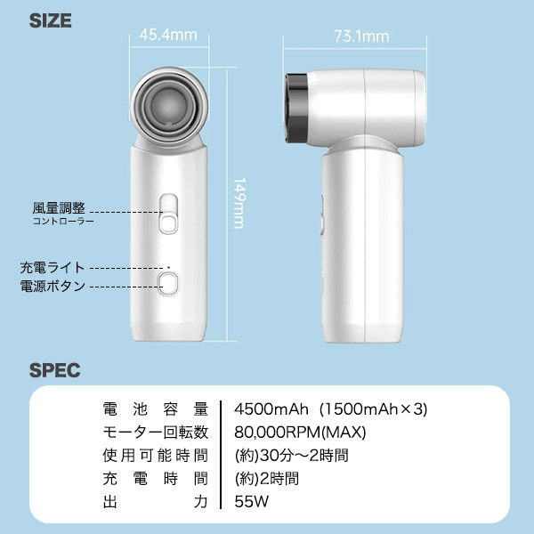 電動エアダスター 充電式 強力 吹き飛ばし 無段階風量調整 コードレス エアダスター ノズル3種類付き ガス不使用 キーボード PC お掃除 窓サッシ パソコン ブラインド 隙間 ミニ扇風機 ハンディファン 空気入れ 火起こし 家電 掃除道具 キーボード掃除 PCキーボード