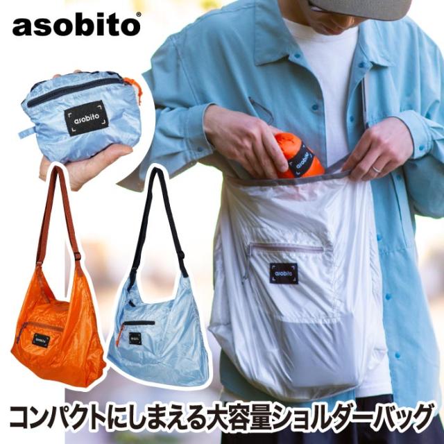 アソビト asobito 折りたたみ パッカブルショルダーバッグ 軽量 軽い 折りたたみバッグ エコバッグ ショルダーバッグ 大容量 小物 便利 旅行 トラベル アウトドア キャンプ レジャー ソロキャンプ BBQ ポケット お出かけ お洒落 おすすめ