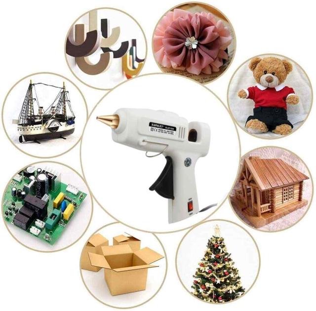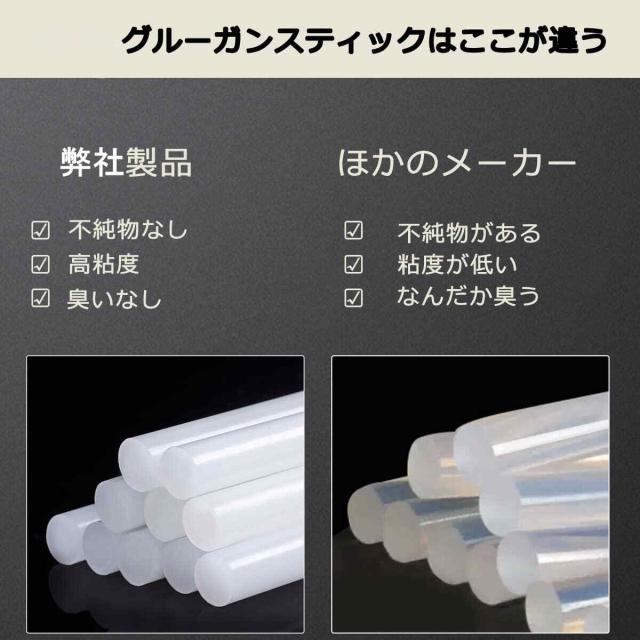 【グルーガンスティック 10本付属】10本の専用グルースティックが含まれています。サイズ:φ7x100mm。強力な接着剤のため、粘着力を持ちつつ、環境に優しくて臭みもありません。半透明で目立たなくて金属、木材、布地、プラスチック、セラミックスなど色な素材同士をくっつけて、様々な接着作業に向いています。
