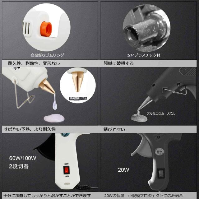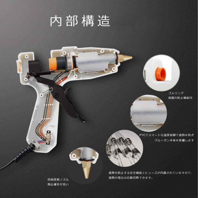 【安全性】20W小型グルーガンが溶融温度250℃可能な高品質の絶縁ノズルで、長時間使用しても、ガンの形状が安心してください。小型グルーガンが日本PSE認証を取得の上、日本の方が安心にご利用いただけます。