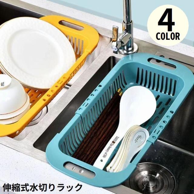水切りラック 水切りかご シンクバスケット 伸縮式 シンク内 プラスチック キッチン収納 台所用品 大容量 省スペース 食器乾燥