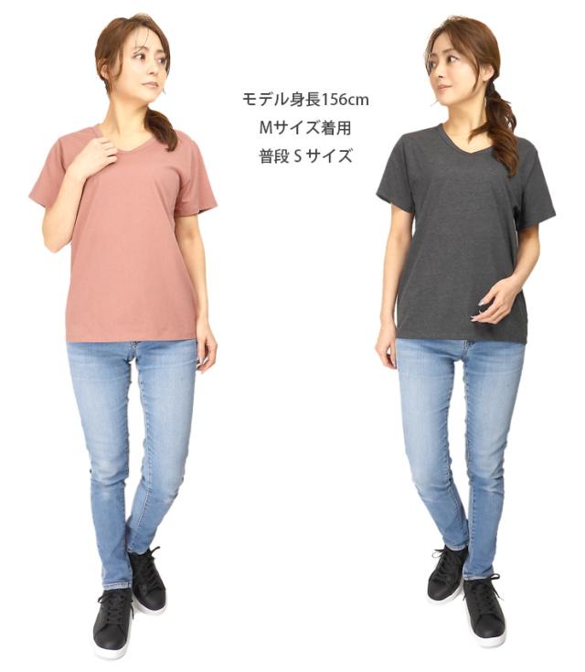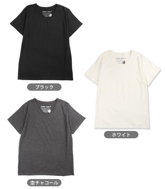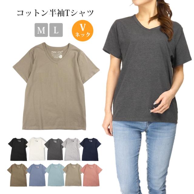 【メール便送料無料】Vネック半袖Tシャツ レディース 春 夏 秋 全10色 M L 51182 シンプル 無地 カットソー トップス 綿100% 黒 白 No.2522