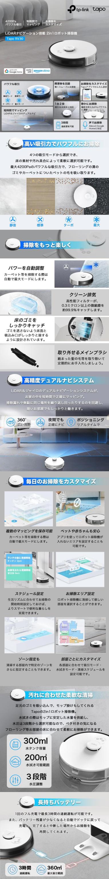 半額クーポン配布中【わけあり 在庫処分】】LiDARナビゲーション搭載 2in1ロボット掃除機 高性能 自動充電 アプリ対応 無線lan TP-Link Tapo RV30 1年保証