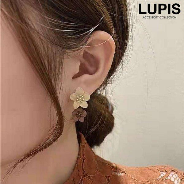 ピアス レディース フラワー 2連 バイカラー マット シック 大人っぽ 華やか シンプル 上品 かわいい ガーリー LUPIS ルピス
