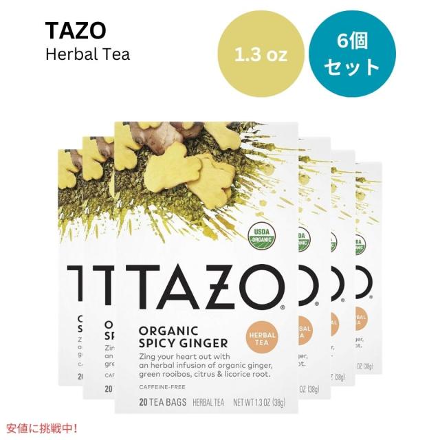 【6個セット】TAZO タゾ オーガニック スパイシー ジンジャー ティーバッグ ハーブティー 20袋 x 6箱 まとめ買い Organic Spicy Ginger Herbal Tea Bags
