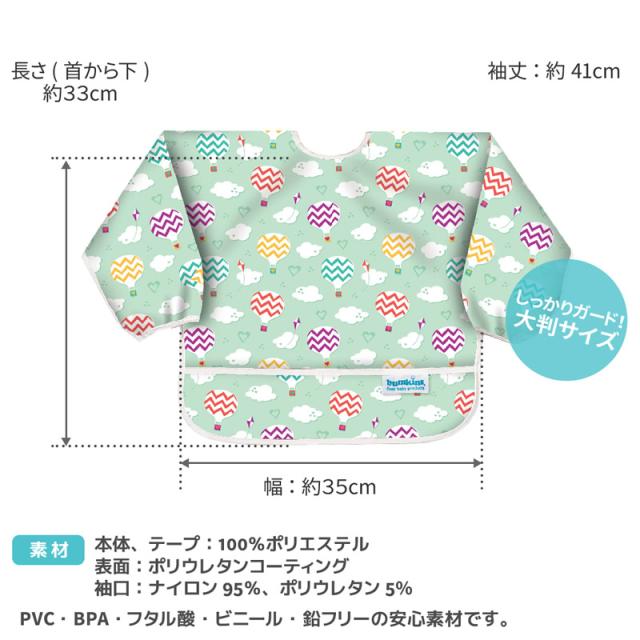 バンキンス スリーブビブ 長袖タイプ (6ヶ月〜2歳) (メール便送料無料) 赤ちゃん エプロン ビブ 食べこぼし 防水 速乾 洗濯機 乾燥機 お食事 通園 園児 ベビー 可愛い BUMKINS