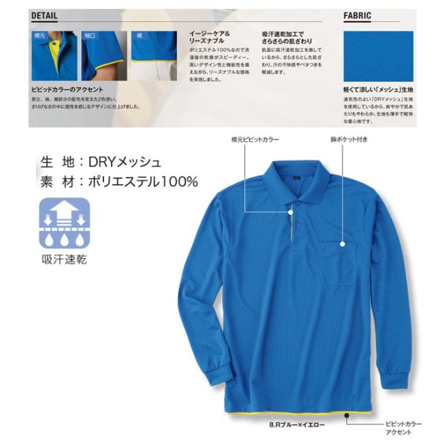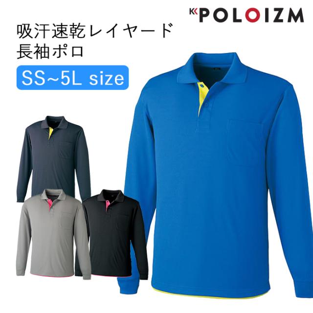 ポロシャツ 小倉屋 POLOIZM 長袖 DRYメッシュ 吸汗 速乾 レイヤード 長袖ポロ 胸ポケット 60191 SS〜5L 4色【送料無料】 メンズ レディース 大きい 小さい サイズ ビジネス ウエア 仕事着 ゴルフ 事務服 保育士 介護士 看護師 作業服 涼しい 小倉屋ポロシャツ agesugi_sfa