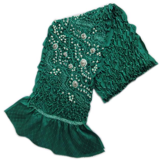 帯揚げ 帯上げ 総絞り 辻が花絞り 濃緑色 正絹 振袖 成人式 着物 きもの 帯あげ しぼり 振袖用 シルク グリーン