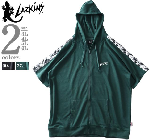 大きいサイズ メンズ LARKiNS ラーキンス 袖ライン 半袖 フルジップ パーカー le674-224
